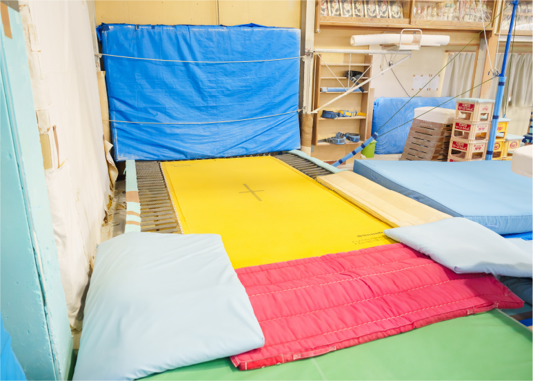 館内には体操専用器具をはじめ、スポンジピットやトランポリンなど充実した設備を取り揃えています